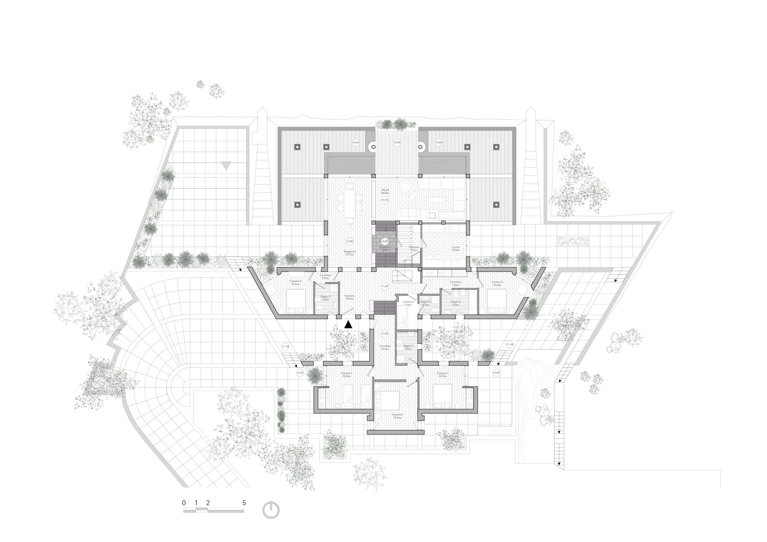 Livré en octobre 2022, le projet offre aujourd’hui une villa de 210 m² entièrement réhabilitée, fidèle à l’identité originelle du bâtiment tout en offrant un confort contemporain. Entre rigueur structurelle, sobriété des interventions et dialogue permanent avec la mer, la villa retrouve sa place dans le paysage tout en demeurant un repère discret sur les hauteurs de Bagheria.